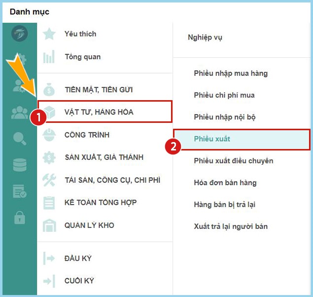 Bước 1: Lựa chọn nghiệp vụ Phiếu xuất