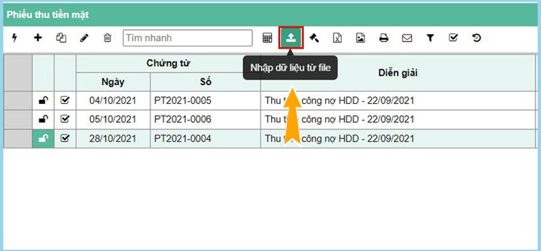 Bước 1: Vào phân hệ muốn cập nhật dữ liệu từ excel