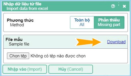 Khi nhấn vào chức năng Nhập dữ liệu từ excel sẽ có màn hình hiện ra. Nhấn vào mục Dowload để tải file excel mẫu về máy.