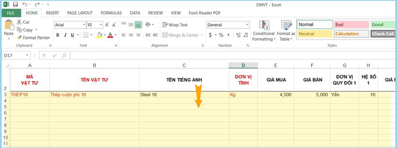 - Dữ liệu tại các dòng điền liên tục không để cách.
