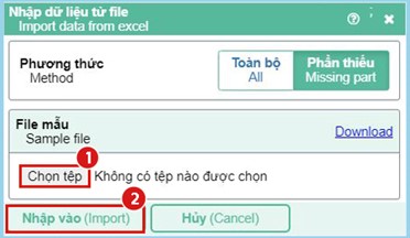 Hiện màn hình chức năng Nhập dữ liệu từ excel chọn mục “Chọn tệp”