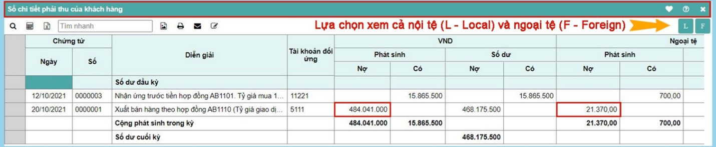 Trường hợp đã nhận được hết thanh toán công nợ ngoại tệ thì số dư phải hết cả bên giá trị tiền việt cũng như giá trị ngoại tệ.