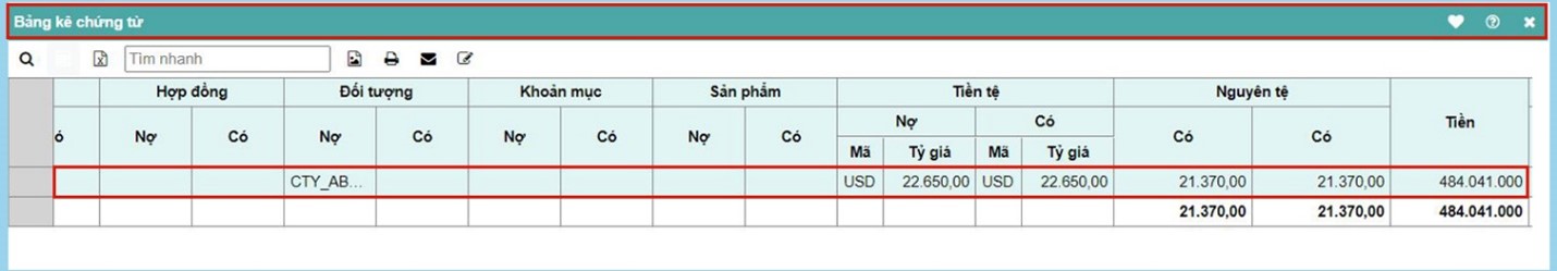 Bước 3: Kiểm tra giá trị hạch toán công nợ và doanh thu