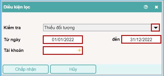 Thiều đối tượng Tài khoản công nợ nhưng nhập thiếu đối tượng.