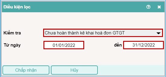 Chỉ tiêu kiểm tra “Chưa hoàn thành kê khai hóa đơn GTGT”