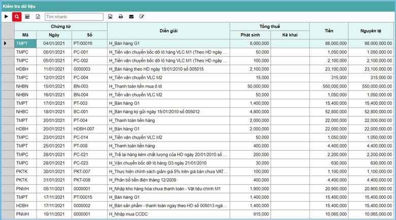 Bài viết này sẽ giới thiệu các chức năng kiểm tra nhanh dữ liệu trong Phần mềm kế toán 3TCloud.
