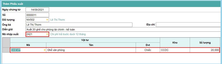(Chi tiết cách nhập phiếu xuất tham khảo tại link)
