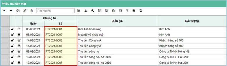 Bước 2: Thực hiện đánh lại số chứng từ