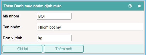Dùng để đại diện cho các nguyên vật liệu có tính chất như nhau có thể xuất thay thế cho nhau trong quá trình sản xuấ sản phẩm. Như vậy khi khai báo định mức sản xuất sản phẩm thay vì phải lựa chọn 1 loại nguyên vật liệu duy nhất người dùng có thể khai báo bằng mã nhóm định mức để gọi tên các loại NVL thay thế cho nhau.
