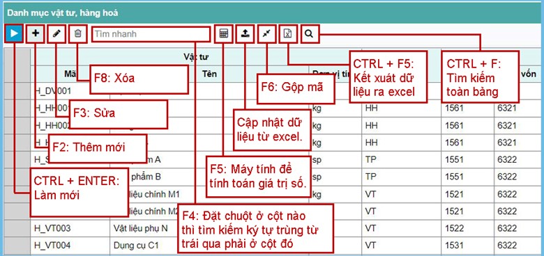 Quản lý hệ thống mã vật tư hàng hóa dùng trong nhập liệu vật tư, hàng hóa, dịch vụ trong phân hệ Vật tư hàng hóa và Quản lý kho.