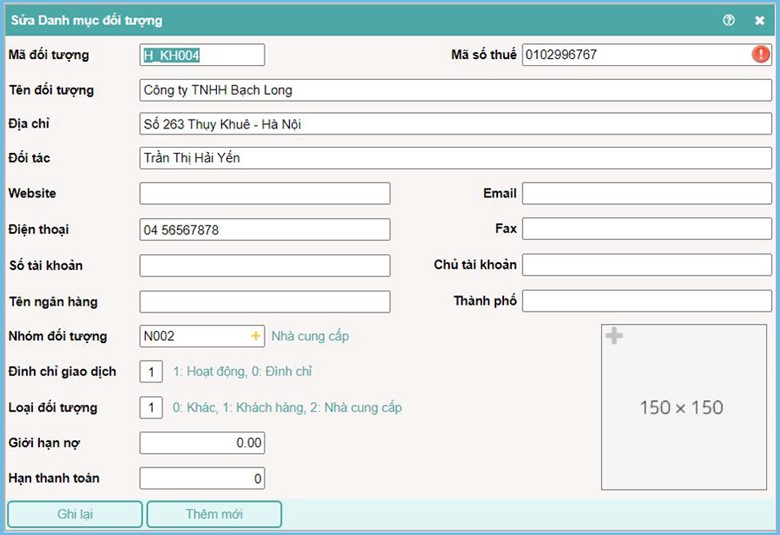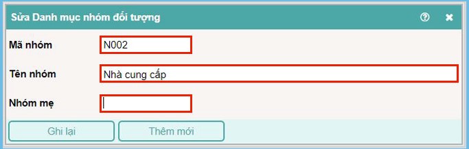 Hệ thống tất cả các mã đối tượng sử dụng khị nhập liệu như đối tượng khách hàng, nhà cung cấp, nhân viên công ty,…