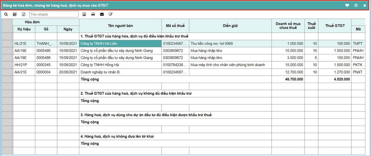 Bước 3: Xem báo cáo thuế và Bảng kê hóa đơn