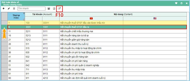 Đặt chuột vào dòng của bút toán muốn thực hiện nhấn biểu tượng thực hiện trên thanh menu hoặc phím tắt F10.