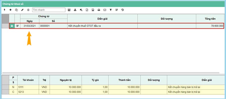 Tại đây sẽ thấy bút toán kết chuyển thuế được tạo ra.