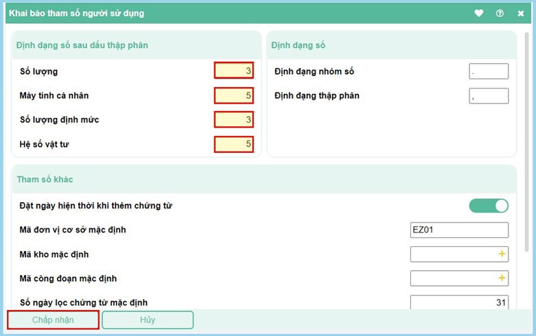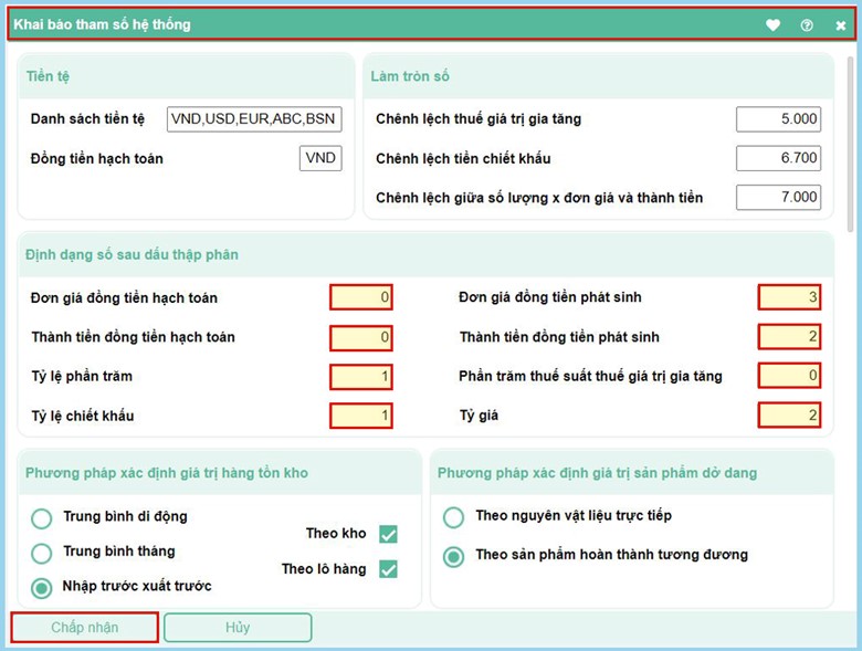 Trên đây là toàn bộ các bước khai báo định dạng số thập phân của các giá trị số sử dụng trong phần mềm.