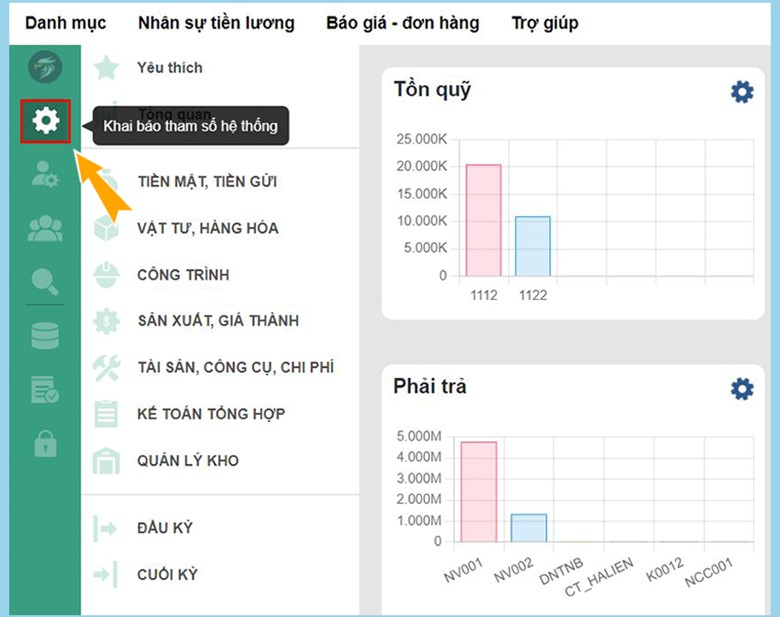 Tại thanh menu chọn chức năng “Khai báo tham số hệ thống”