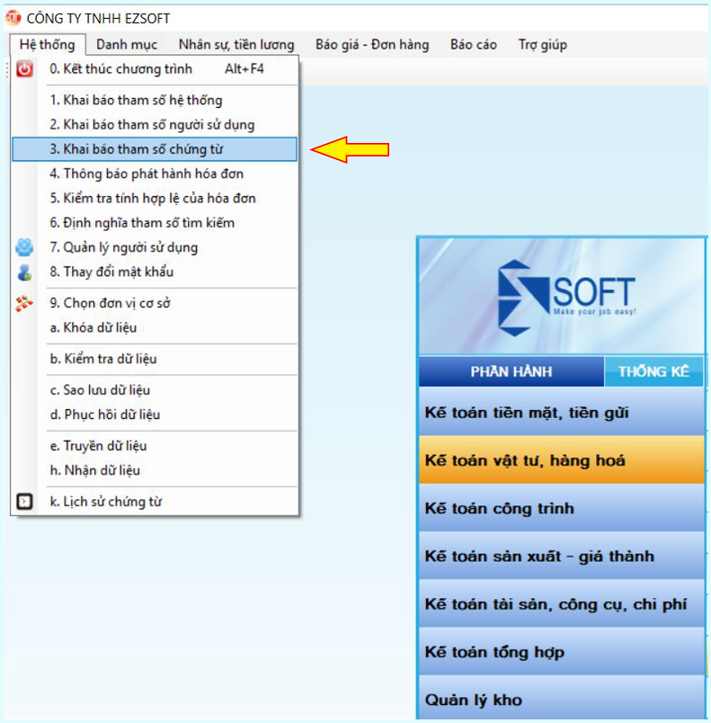 - Vào mục Hệ thống. Tích chọn Khai báo tham số chứng từ.