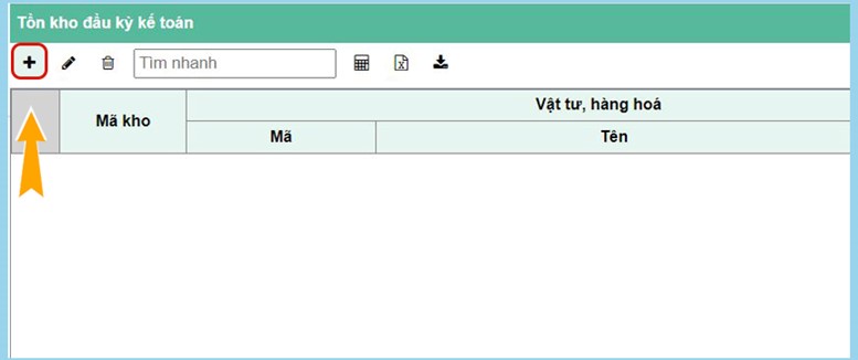 | Mã kho | Là mã của kho có vật tư hàng hóa tồn đầu kỳ. |