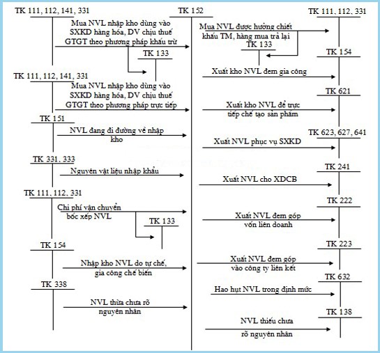 2. Sơ đồ hạch toán nghiệp vụ liên quan tới TK 152 – Nguyên vật liệu