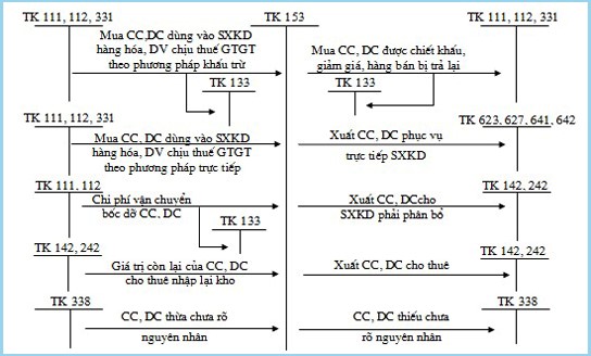 3. Sơ đồ hạch toán nghiệp vụ liên quan tới TK 153 – Công cụ, dụng cụ