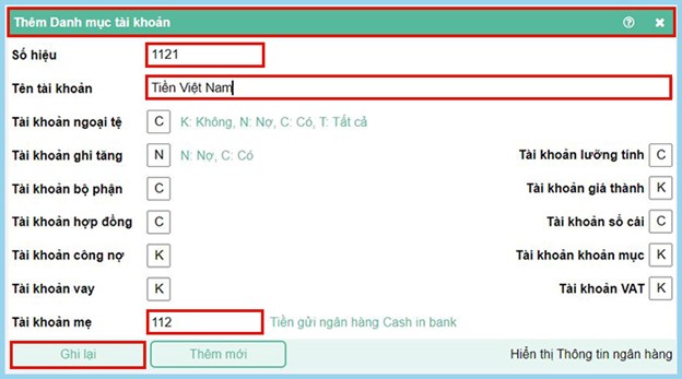 Bước 5: Lần lượt thêm mới các tiểu khoản con còn lại
