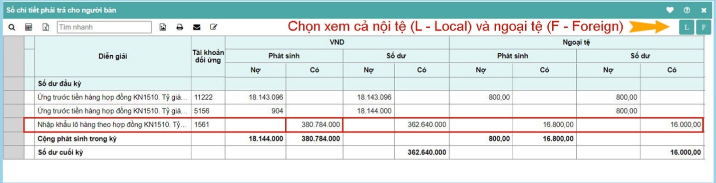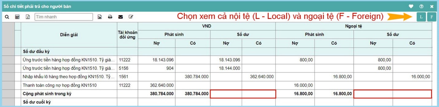 Sổ chi tiết phải thu khách hàng: Nếu đã thanh toán hết thì phải hết cả Số dư tiền Việt và Số dư ngoại tệ.