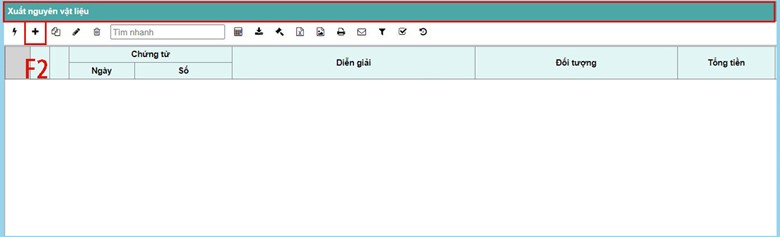 Nhấn dấu + trên thanh menu hoặc phím tắt F2 để thêm mới màn hình nhập liệu nghiệp vụ.